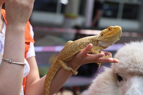 活动现场,萌宠天团集体亮相。憨态可掬的羊驼带着标志性“无辜脸”,吸引众人目光;雪白的宠物兔穿梭似绒球,触感柔软令人着迷;玄凤鹦鹉歪头卖萌,可爱模样直击人心;鬃狮蜥与玉米锦蛇也展现出神秘优雅的独特魅力。工作人员化身自然讲师,以生动幽默的语言和丰富的案例,向同学们科普动物知识。活动中,同学们还踊跃写下保护动物的标语,积极参与互动。