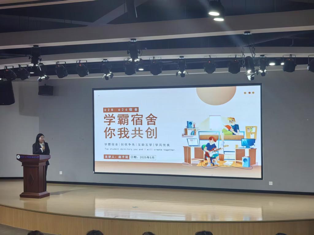 本次活动以提升公寓文化品质、促进学生全面发展为核心,在全校“星级宿舍”的基础上,聚焦德、智、体、美、劳五个维度,设立了“红旗宿舍”“学霸宿舍”“超能宿舍”“最美宿舍”“劳模宿舍”,聚焦思想引领、品德高尚、团结互助,展现榜样力量;营造优良学风,评选学业成绩优异、科研竞赛成果丰硕的样本宿舍;鼓励热爱体育锻炼,崇尚健康生活,充满活力与正能量;提倡环境布置优美雅致、富有文化创意,体现审美情趣;践行劳动实践,内务整洁有序,乐于服务奉献。活动自启动以来,吸引了近百所宿舍踊跃参与。同学们热情高涨,宿舍环境面貌焕然一新,公寓文化氛围日益浓厚。经过自主申报、院系推荐、资格审核、月度卫生与安全检查、风采展示等环节,最终评定红旗社区环境与化学工程学院U1-713、工商管理学院U2B-127等15个宿舍为“红旗宿舍”,红旗社区人工智能学院U2B-415、环境与化学工程学院U2A-224等6个宿舍为“学霸宿舍”,明德社区建筑工程学院2号楼307、红旗社区材料工程学院U3A-726等2个宿舍为“超能宿舍”,红旗社区经济贸易学院U2A-735、汽车工程学院U2B-343等5个宿舍为“最美宿舍”,明德社区工商管理学院8号楼514、红旗社区智能制造学院U3B-635等7个宿舍为“劳模宿舍”。