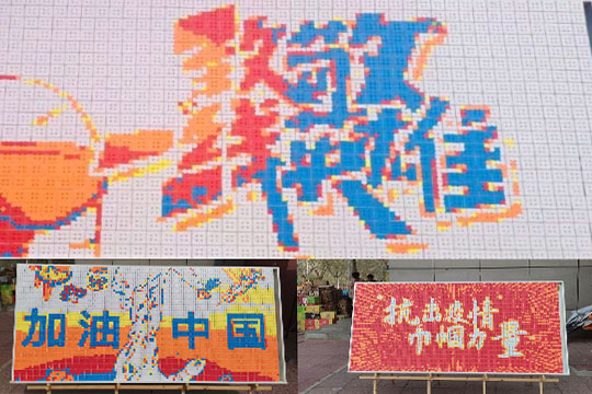 随着整齐的“5、4、3、2、1”倒计时声,“致敬一线英雄”“加油中国”“抗击疫情、巾帼力量”三块精美的主题魔方墙露出真容,来自魔方协会的32名同学激动不已,发出了热情的欢呼。这是4月10日校园魔方活动现场上的一幕,活动持续两天时间,同学们悉心布置,精心打造了这几个由3000多块魔方拼接而成的魔方作品。