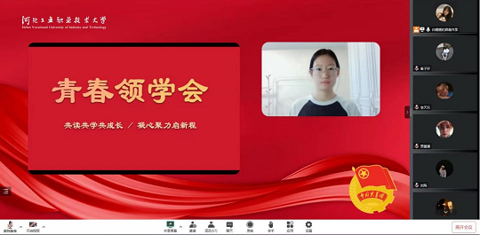 本期青春领学人是2021年度国家励志奖学金获得者、来自工商管理系的白媛媛同学,通过线上直播分享的方式,她带领学员们学习了《把青春热血镌刻在历史丰碑上——论习近平总书记在陕西延安和河南安阳考察时的重要讲话精神》,结合总书记讲话内容穿插播放《走进红旗渠》《岳麓山红色故事》等节选视频,学员们认真听、认真看、认真记、认真学,学出对党忠诚的理想信念,学出严于律己的鲜明品格,学出实干为要的优良作风。