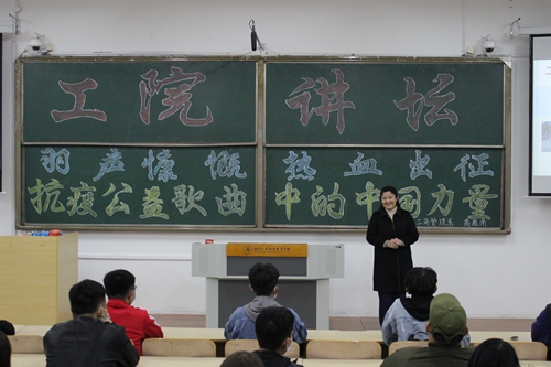 从阖家团圆到全员抗疫,带你感受抗疫公益歌曲中的中国力量。11月10日晚,工商管理系高雁南老师在3119教室以“羽声慷慨,热血出征——抗疫公益歌曲中的中国力量”为主题展开讲座,带领同学们走进抗疫前线,领略歌声中的大爱、勇气和担当。