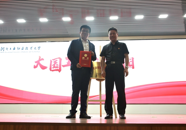汇报会后,学校举办了“周文涛技能大师工作室”揭牌仪式,与河钢集团共建绿色冶金生产技术技能大师工作室,聘任高峰为“校外辅导员”,今后学校将通过多种形式开展技术攻关创新和高素质技术技能人才培养,多方面指导学生专业学习、开展教育活动,加强思想引领,提高学生综合素质。两位老师的聘任为学校育人共同体建设充实了力量,营造劳动光荣、技能宝贵、创造伟大的校园风尚,助推办好新时代职业教育,服务技能型社会建设。