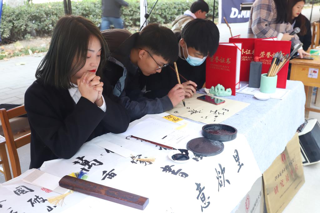 活动开展前,社团发展中心的同学们全面规划、积极筹备,搭帐篷、拉条幅、摆桌椅、展作品,以最好的状态迎接新成员的到来。为了吸引更多的新同学加入到社团中来,各社团展现出了拿手好戏,用自己独特的方式吸引同学们停住脚步。“风之舞”轮滑社的社员们在轮滑鞋上舞动青春,在障碍物之间自由穿梭;向阳花话剧社的快板、京剧表演精彩纷呈,引发了同学们的阵阵喝彩;Always动漫社的Cosplay让我们与漫画中的角色亲切见面,在现实中感受二次元的魅力;尚甜烘焙社中的甜品传来阵阵香气,勾引着我们的味蕾,让我们垂涎欲滴;音遇626声工厂里,吉他与人声的配合,流畅地奏出一串串美妙的乐音,肆意地向我们展示着音乐的魅力;翰墨轩书法社的书法黑白窈窕,万淘其力,逆锋起笔最能得势,向我们展现了中华书法的博大精深。纳新现场人头攒动、热闹非凡,他们用各自的魅力吸引着新生力量的注入。根据大数据统计,2020级新生共有8037人次参与社团纳新,创历年纳新历史新高。