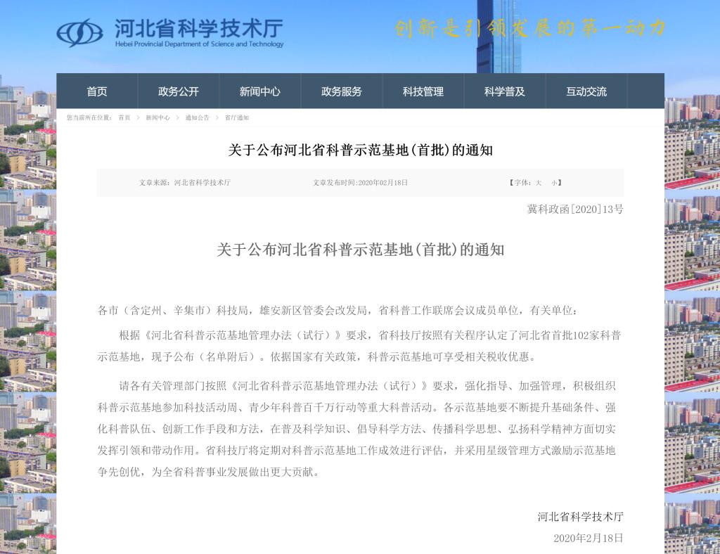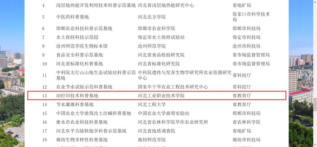 近日,河北省科技厅公布了首批河北省科普示范基地名单,我院3D打印技术科普基地成功入围。